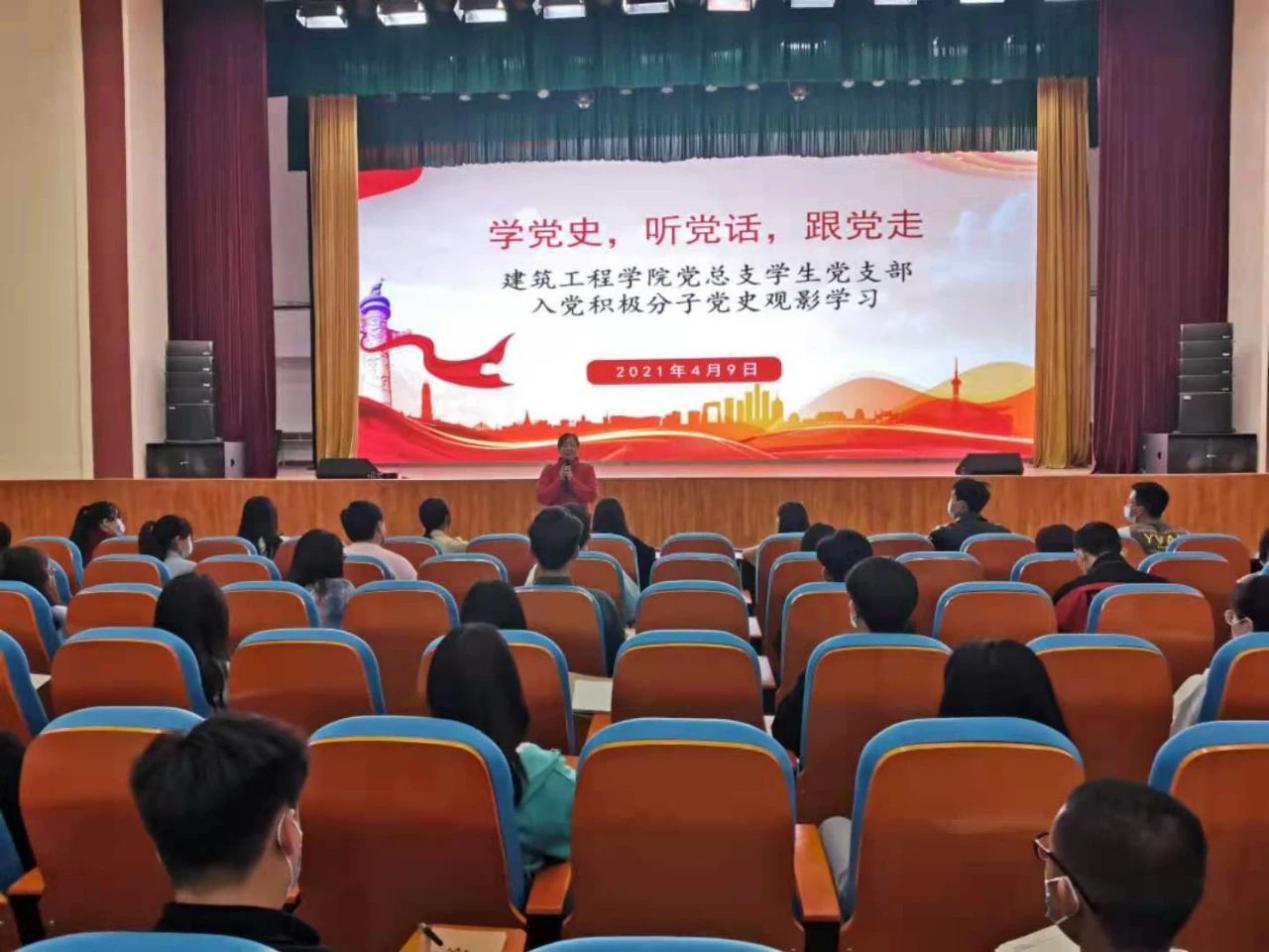 为推动全面实施素质教育,隆重庆祝建党一百周年,2021年4月9日,建筑工程学院党总支学生党支部组织全体入党积极分子举办以“学党史,听党话,跟党走”为主题的学党史红色研学系列学习教育,旨在引导他们通过学习、交流讨论,做到学史明理、学史增信、学史崇德、学史力行。