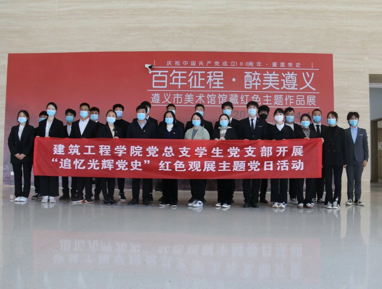 为庆祝中国共产党建党100周年,回顾党的奋斗历史,讴歌党的光辉事迹,2021年3月24日,建筑工程学院党总支学生党支部党员代表和20名入党积极分子前往郑州市美术馆,开展了“追忆光辉党史 感受红色文化”主题党日活动。