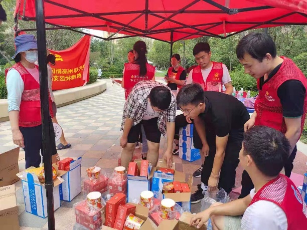 险情就是命令,防汛就是责任。做好防汛救灾工作是当前的一项重大政治任务。7月24日上午9时,当建筑工程学院党总支书记马春燕得知秋雅社区分发救灾物资缺人手的时候,她再次召集7名党员教师和5名学生党员走进社区支援。大家负责分装发放9、10、11、12四栋楼物资,遇到行动不便的老人或者带孩子的妇女时,大家帮忙运送上楼。