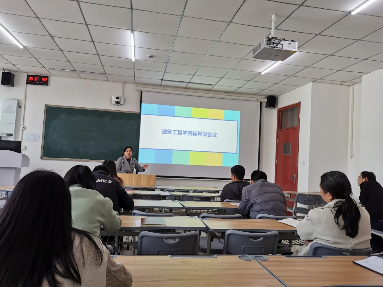 接着,马书记对学生日常管理工作向大家进行了强调,包括钉钉打卡、宿舍安全、双创竞赛、18级毕业环节注意事项,以及各班级家庭收入低、学业困难学生数据库建立等问题。在建党100周年纪念活动为契机,马书记要求辅导员要扎实开展学生党史学习、社会实践、志愿服务等丰富多彩的班级活动,引导学生自觉培养家国情怀,促进学生身心全面发展,增强班级凝聚力,展现建工学子团结一心,勇往直前的精神面貌。