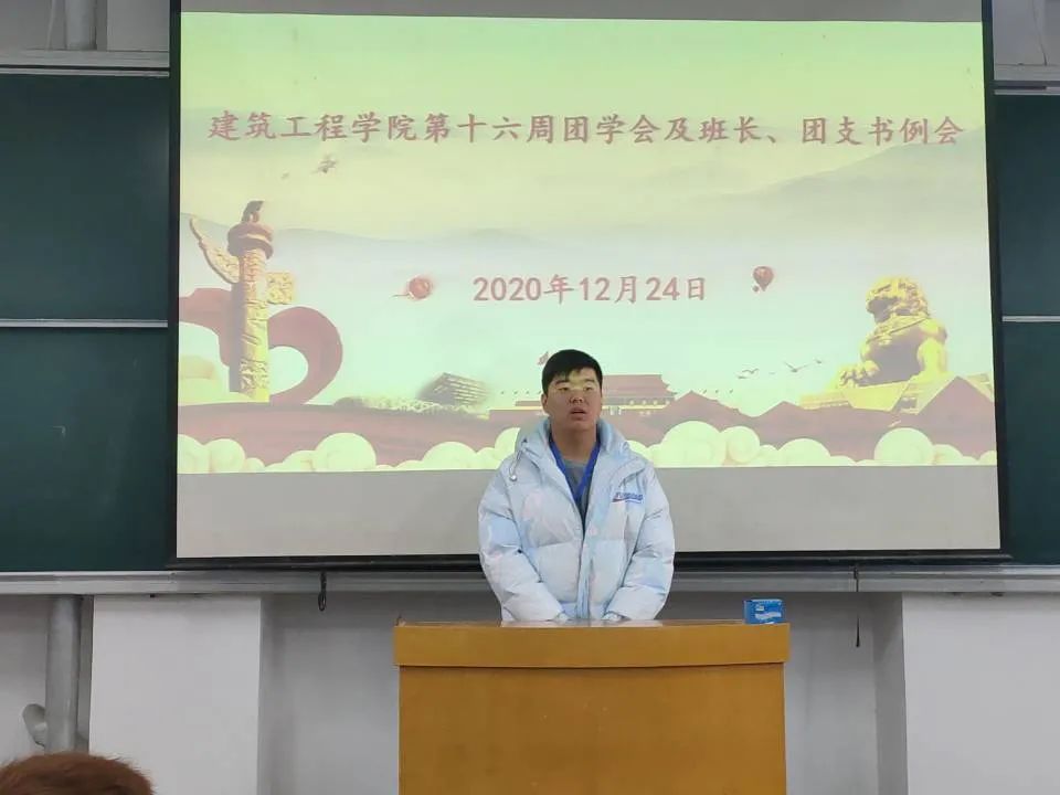 为了提高全体学生干部的工作积极性,提高工作效率和学习效率,解决在工作中的难题。建筑工程学院西校区于2020年12月24日中午12:20在B楼102教室开展了建筑工程学院西校区第十六周学生干部例会。参与本次会议的有马春燕书记、刘高喜主任、宋春磊老师、李慧杰老师、孙雪理老师、全体团学会成员及各班班长、团支书。
