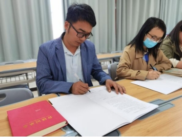马春燕代表建筑工程学院与各年级辅导员签订辅导员工作职责告知书。